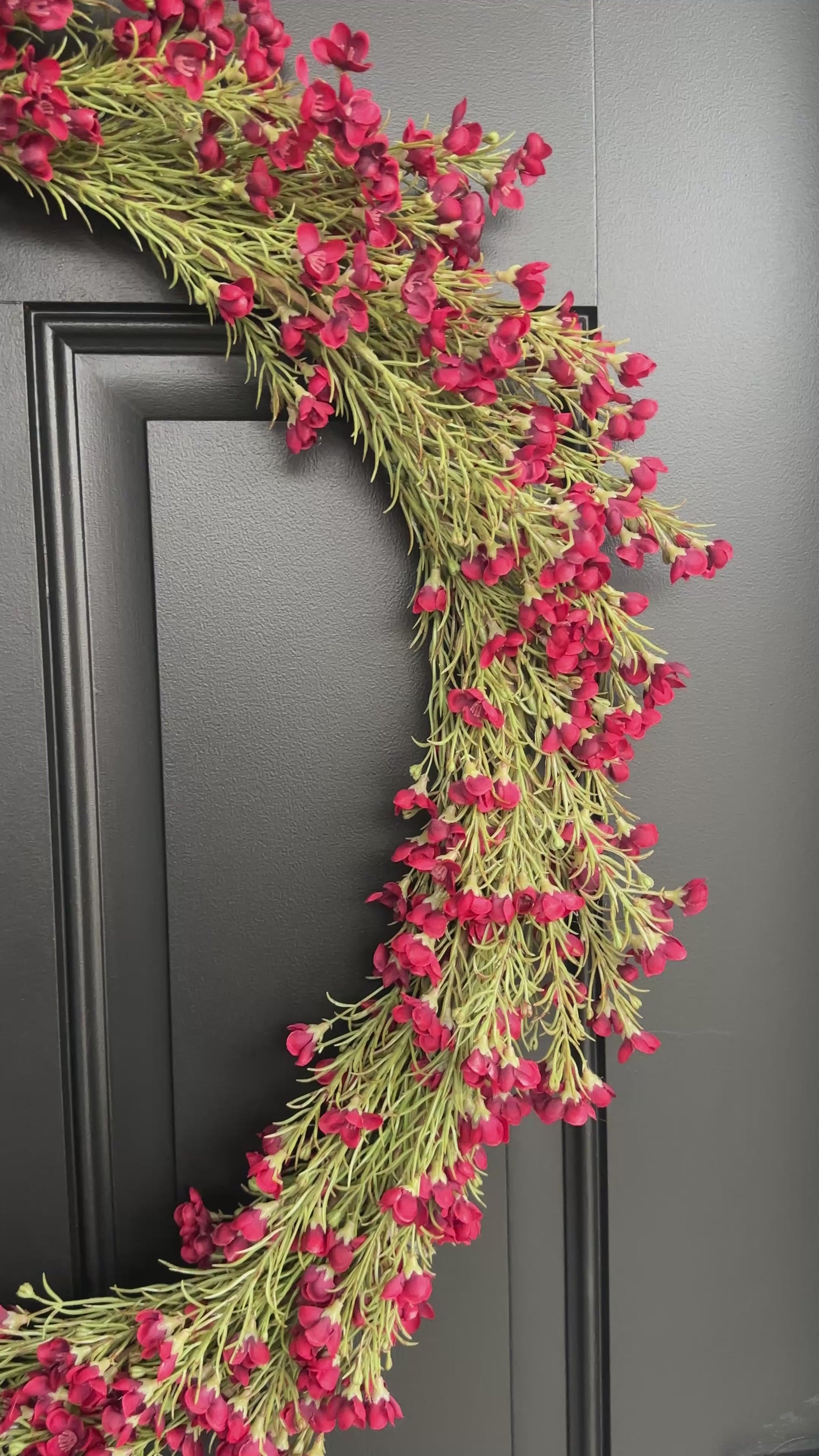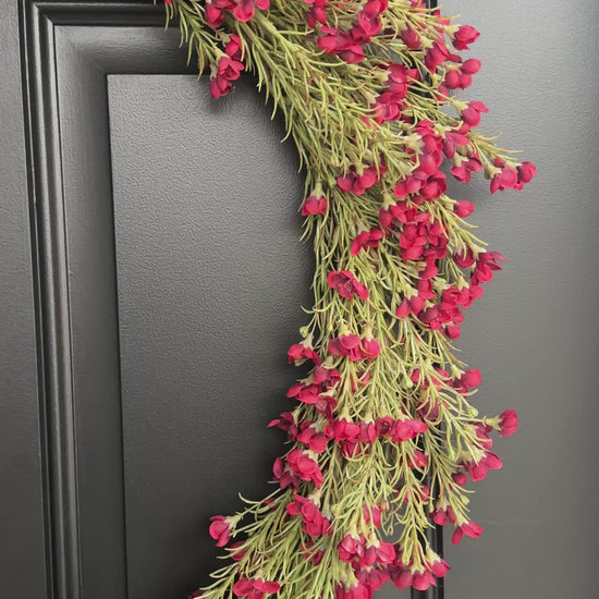 Transform your seasonal displays with this expertly designed Christmas wreath. Featuring lifelike burgundy wax flower stems, it brings sophisticated holiday elegance to entryways, walls, and mantels alike.